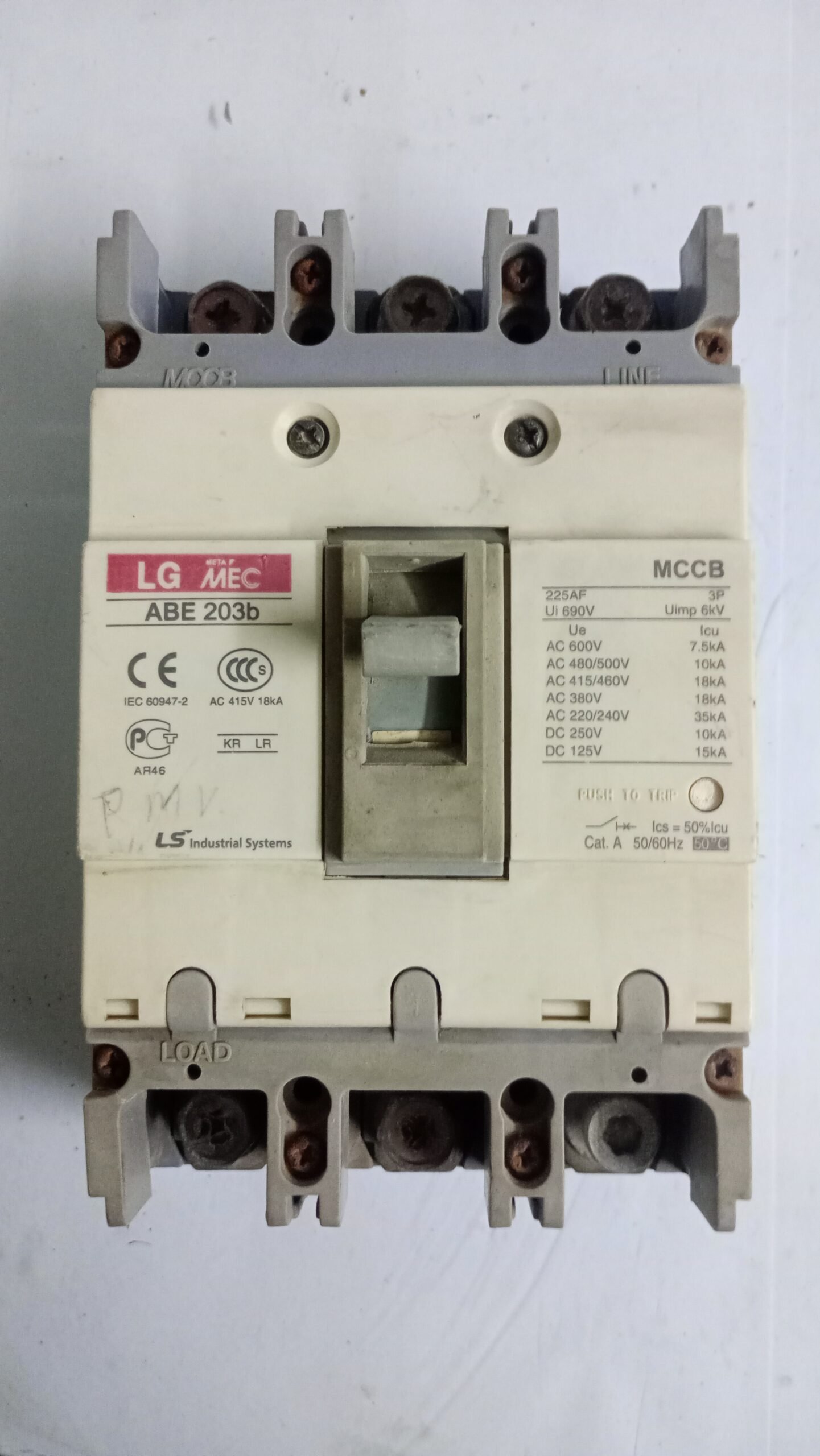Manufactured by LG MEC, the ABE 203B MCCB used unit delivers durable protection and reliable operation.